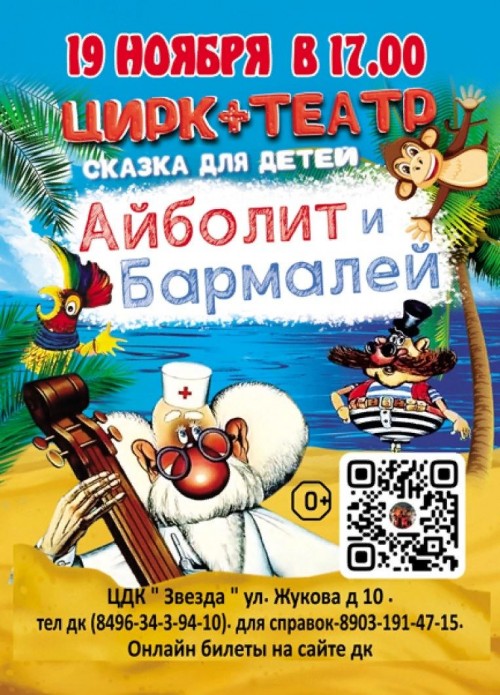 19 ноября 2023 года Дворец культуры «Звезда» представляет Спектакль «Айболит и Бармалей»