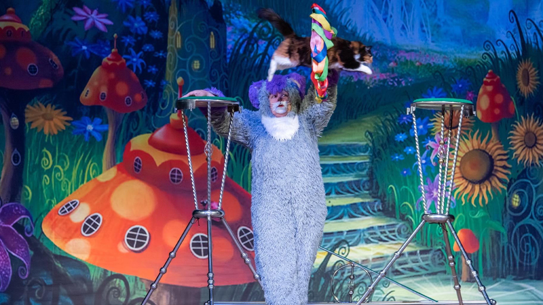 Театрально-цирковое шоу по мотивам сказки Льюиса Кэрролла приглашает вернуться вместе с Алисой в страну чудес! Проводником в волшебную страну станет Безумный Шляпник, который удивляет невероятными трюками с чайными кружками и своим сумасшедшим чувством юмора. Его волшебная шляпа прочитает мысли самых смелых. Алиса порадует зрителей гигантскими мыльными пузырями и завораживающим световым шоу. Зрителя ждёт встреча с Чеширским Котом и другими персонажами сказки, артистами оригинального жанра и дрессированными животными.