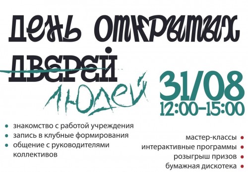 В последнюю субботу августа во всех культурно-досуговых учреждениях Московской области проходит Единый день открытых дверей. Начало мероприятия в 12:00.