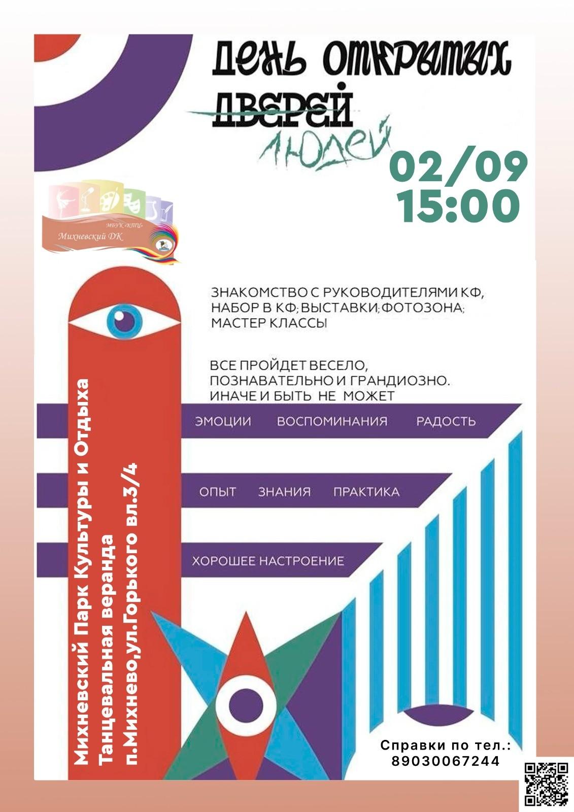 2 сентября в парке Михневский Дом культуры проводит День открытых дверей.