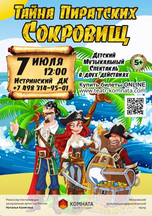 7 июля 2024 года Истринский Дом культуры представляет Спектакль Детский музыкальный спектакль «Тайна пиратских сокровищ»