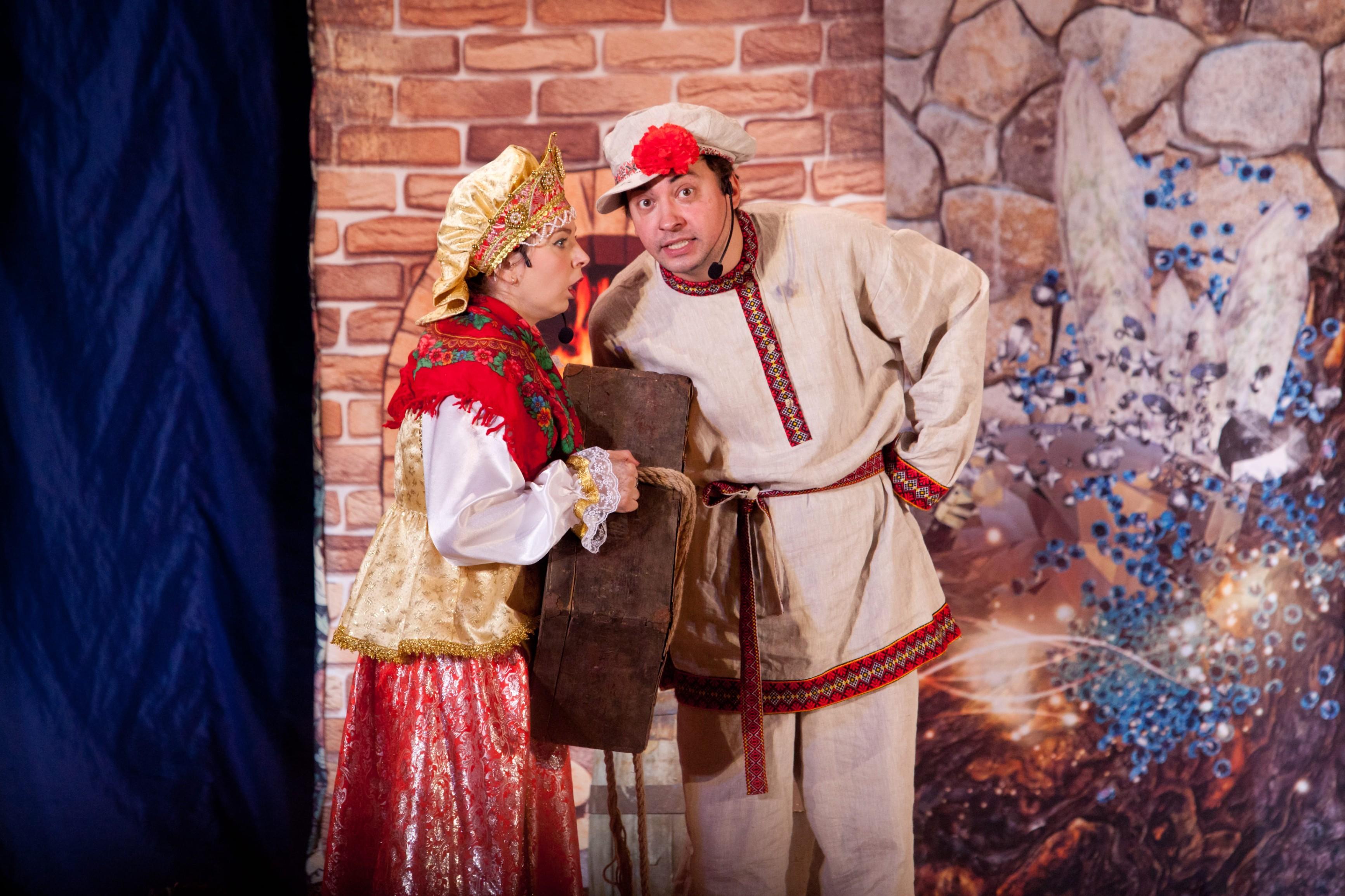 В спектакле великолепные декорации, которые меняются на глазах зрителя. На смену деревне, где живет Федор-кузнец и его невеста Дуня, приходит изба Бабы-Яги с печкой и сказочными животными. Тронный зал Царя Кощея с гигантским троном, изготовленным специально для спектакля, за мгновения превращается в пещеру Змея Горыныча. Ну, и. конечно, музыка придает спектаклю неповторимую яркость и очарование.