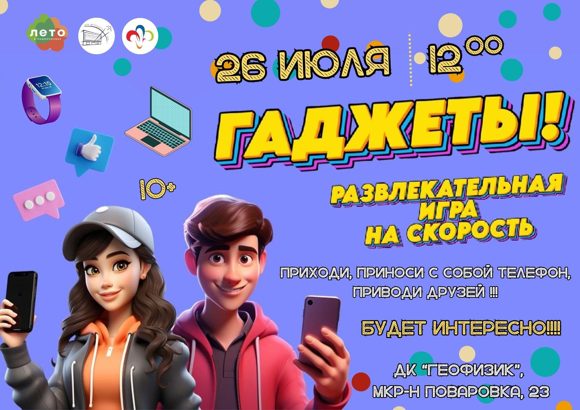 26 июля 2024 года Дом культуры «Геофизик» представляет Командная игра на скорость - «ГАДЖЕТЫ!»