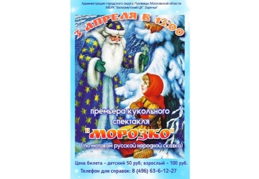 4 апреля 2021 года Центр культуры «Заречье» представляет Спектакль Кукольный спектакль <<Морозко>>
