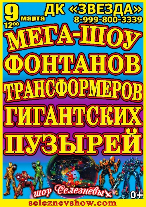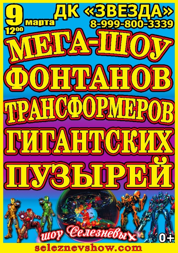 9 марта 2020 года Дворец культуры «Звезда» представляет Спектакль Мега-шоу фонтанов, трансформеров и гигантских пузырей