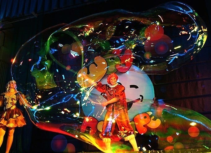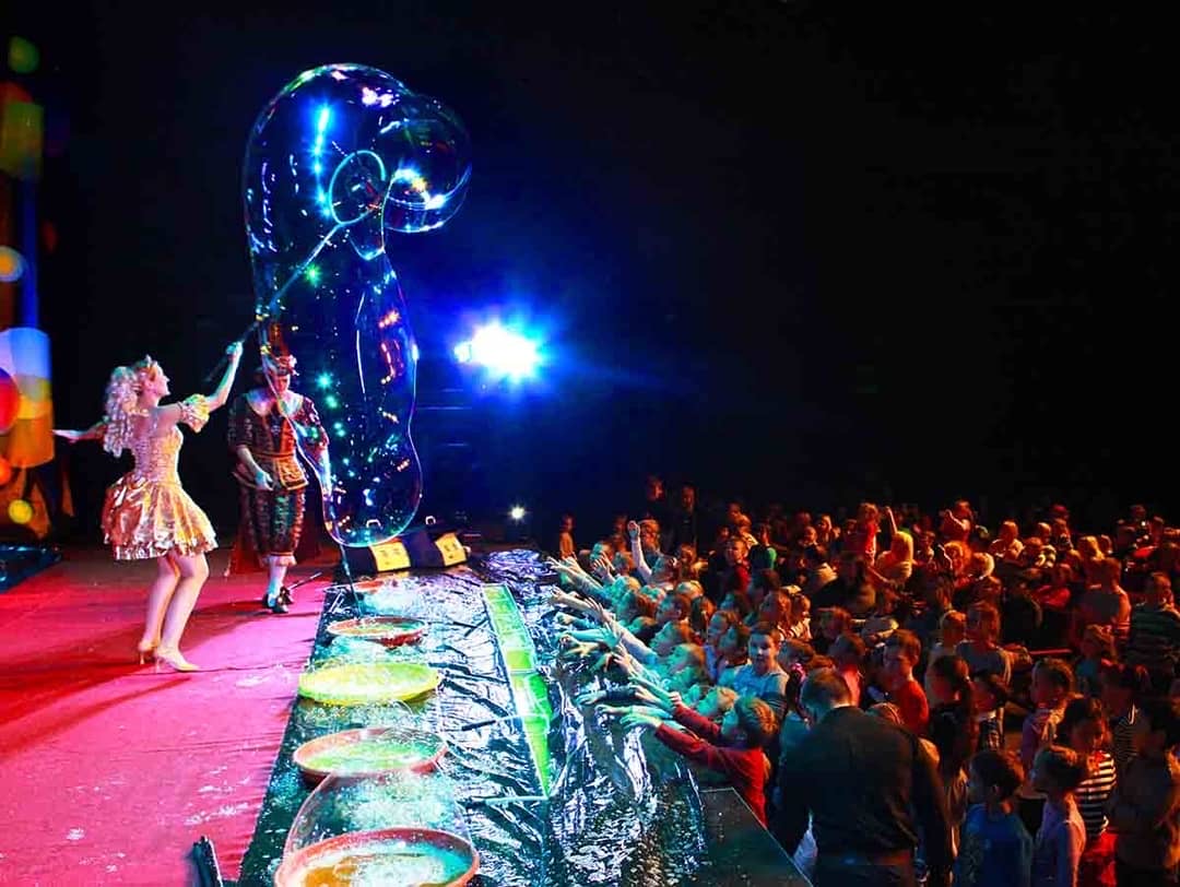 Это грандиозный шоу-спектакль для детей, аналогов которому в России пока не существует. Потрясающие спецэффекты и цветные танцующие фонтаны, световое и лазерное шоу превращают зрительный зал в настоящую сказку, а мыльные пузыри в светящееся и переливающиеся всеми цветами радуги чудо!