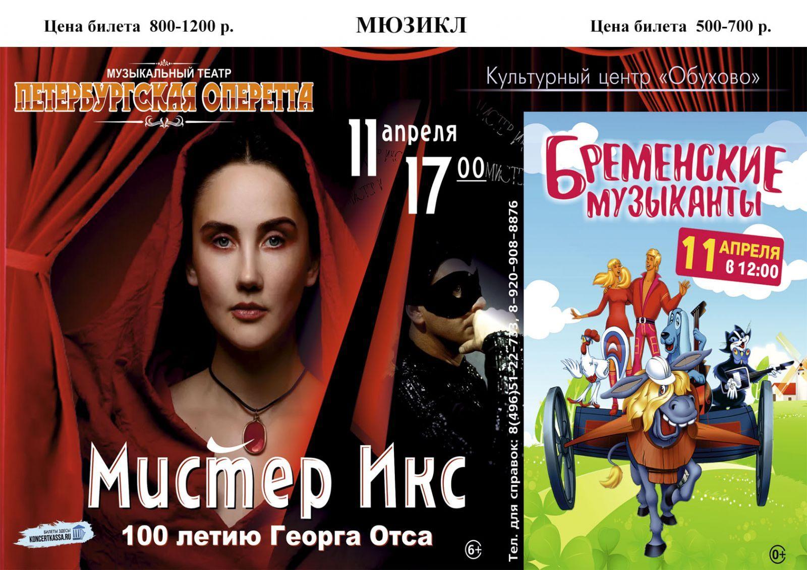 11 апреля 2021 года Культурный центр «Обухово» представляет Спектакль «Мистер Икс» / «Бременские Музыканты»