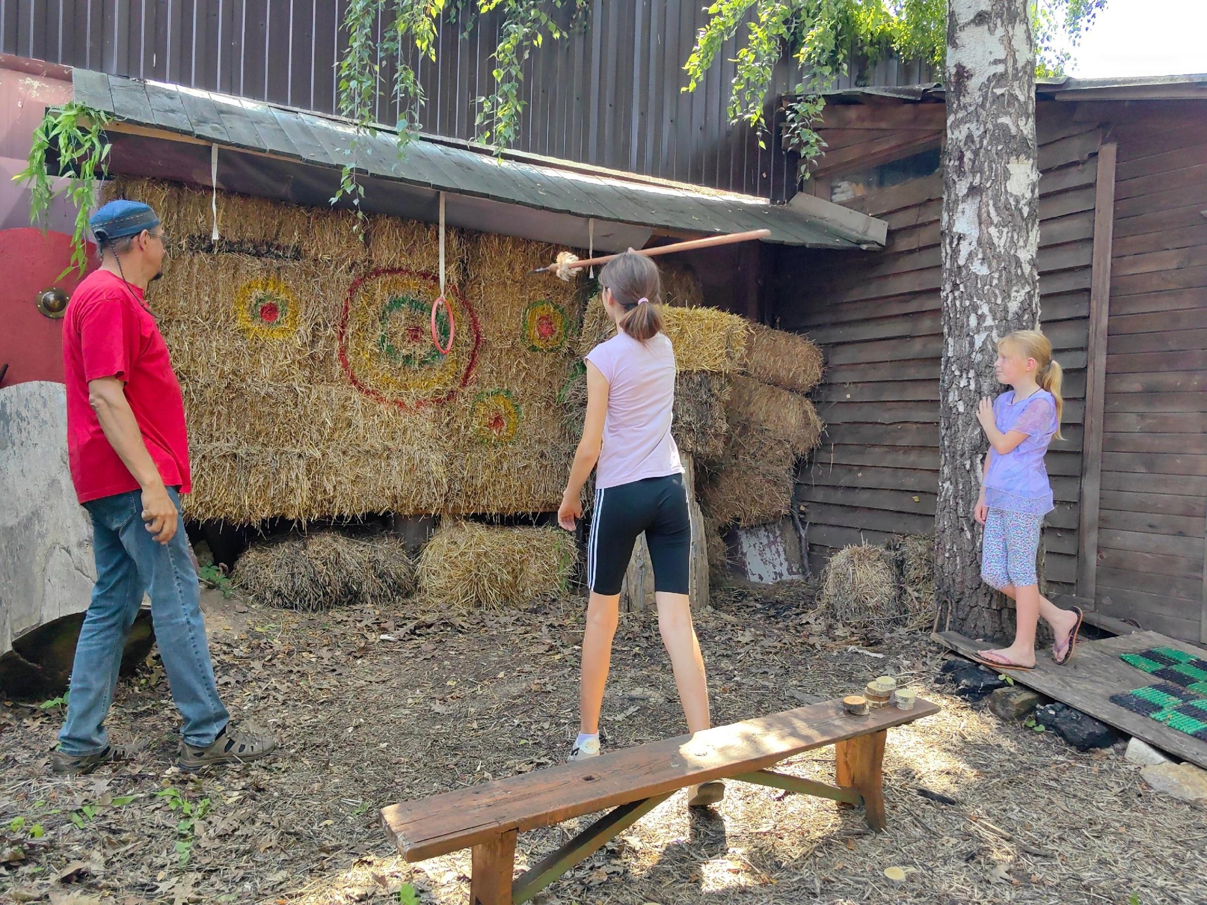 1) Метание копья с необычным названием «Сулица». Сулица — это холодное оружие, которое использовалось всеми славянскими племенами, а позже стало на вооружение ратей и дружин. надо отправить в цель 3 сулицы разного веса.