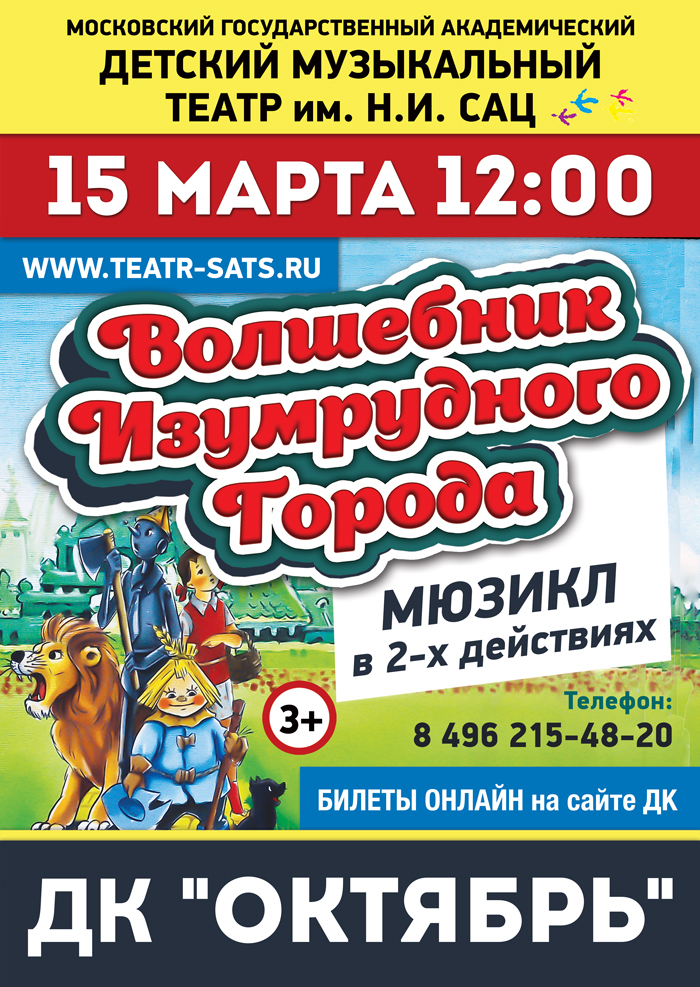15 марта 2020 года Дворец культуры «Октябрь» представляет Спектакль « Волшебник изумрудного города»