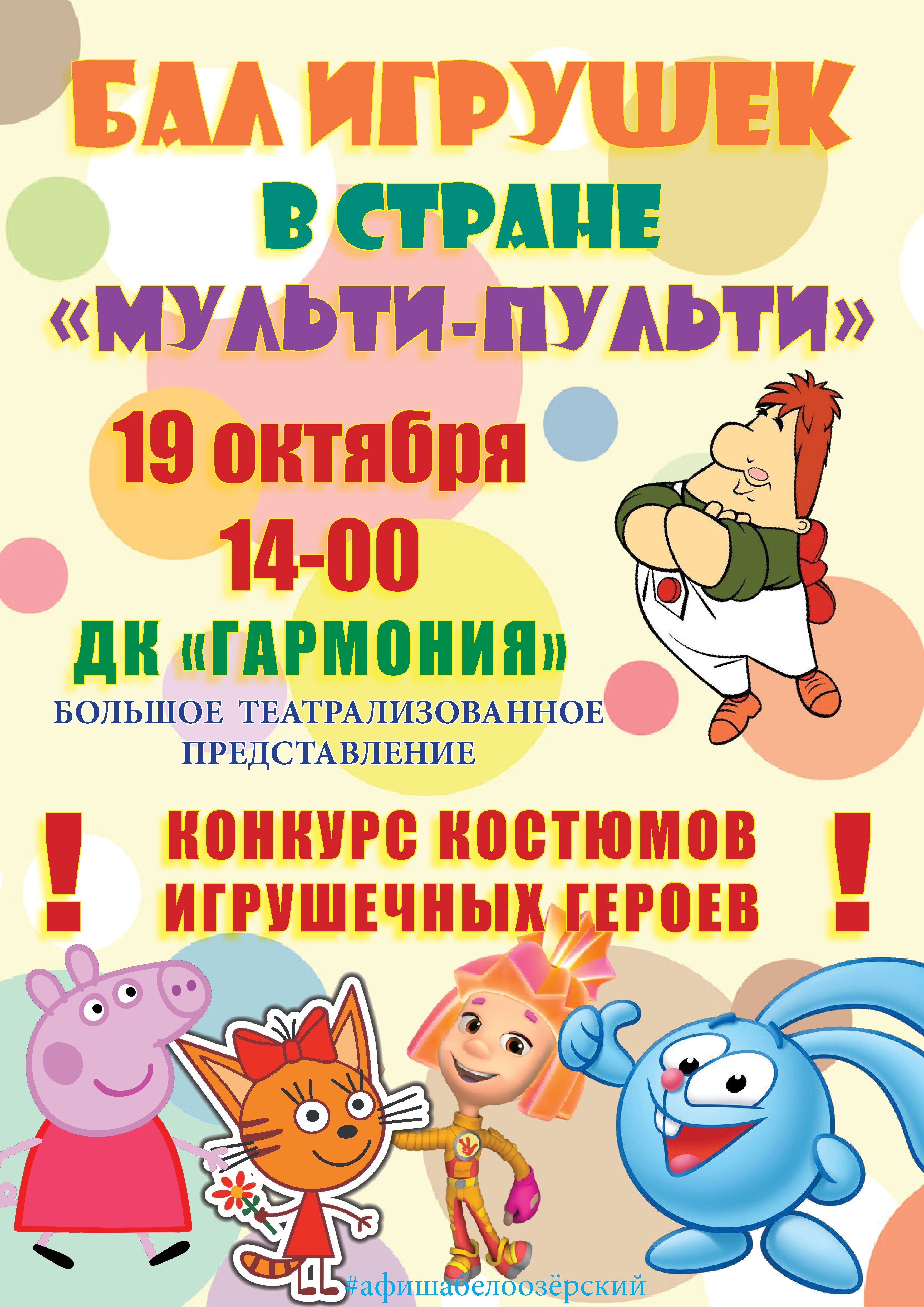 19 октября 2019 года Дом культуры «Гармония» представляет Спектакль «Бал игрушек в стране Мульти-пульти»