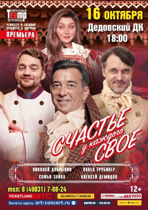 16 октября в 18:00 приглашаем вас на антрепризу «Счастье у каждого своё».