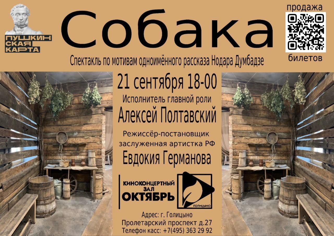 21 сентября 2024 года Киноконцертный зал «Октябрь» представляет Спектакль «Собака»