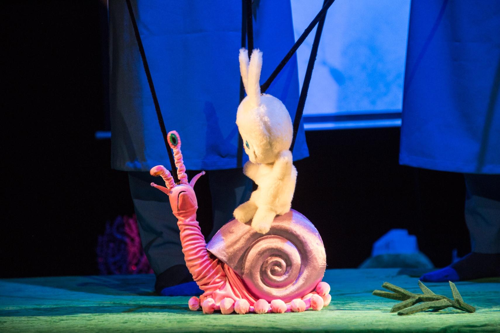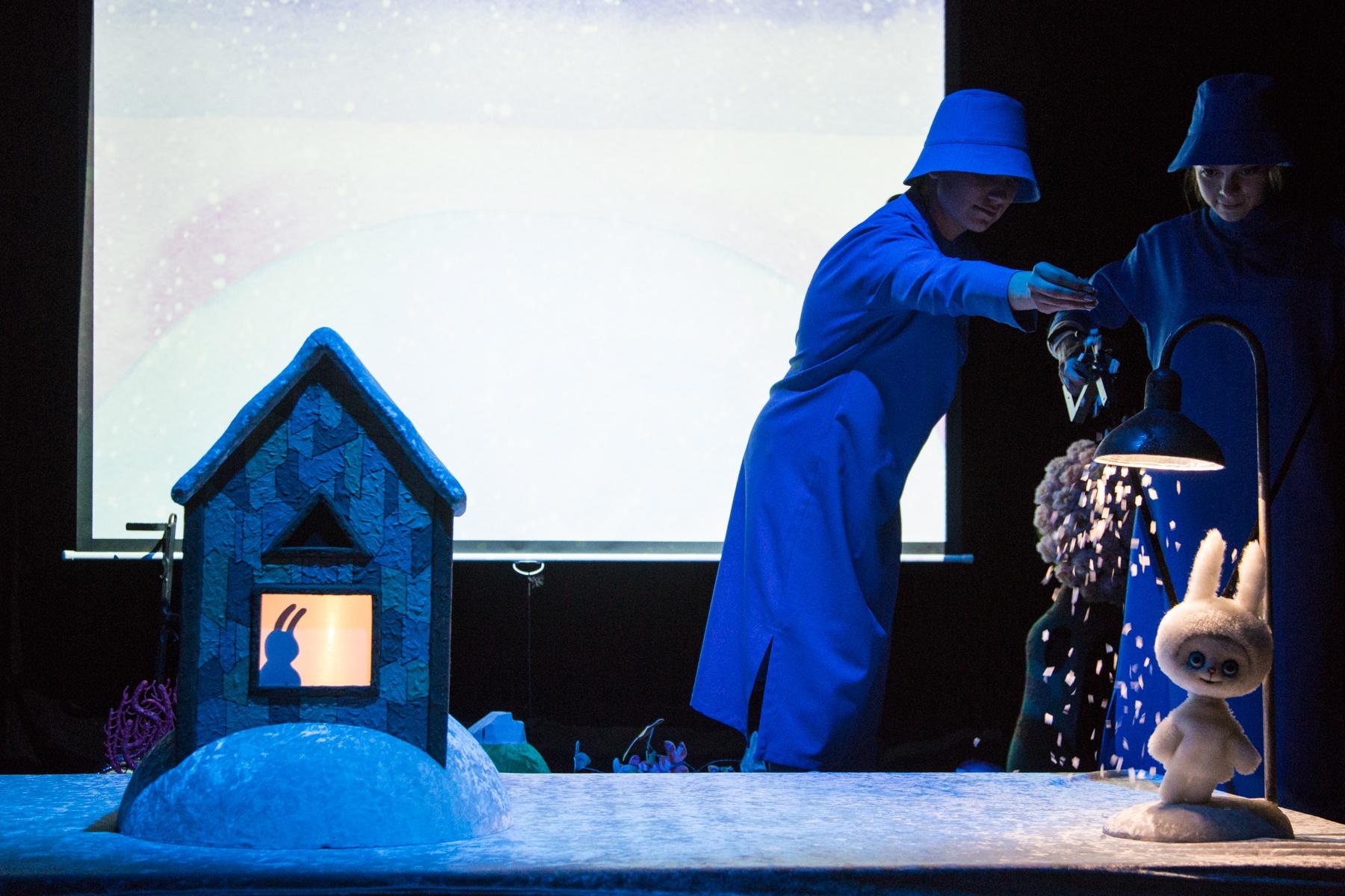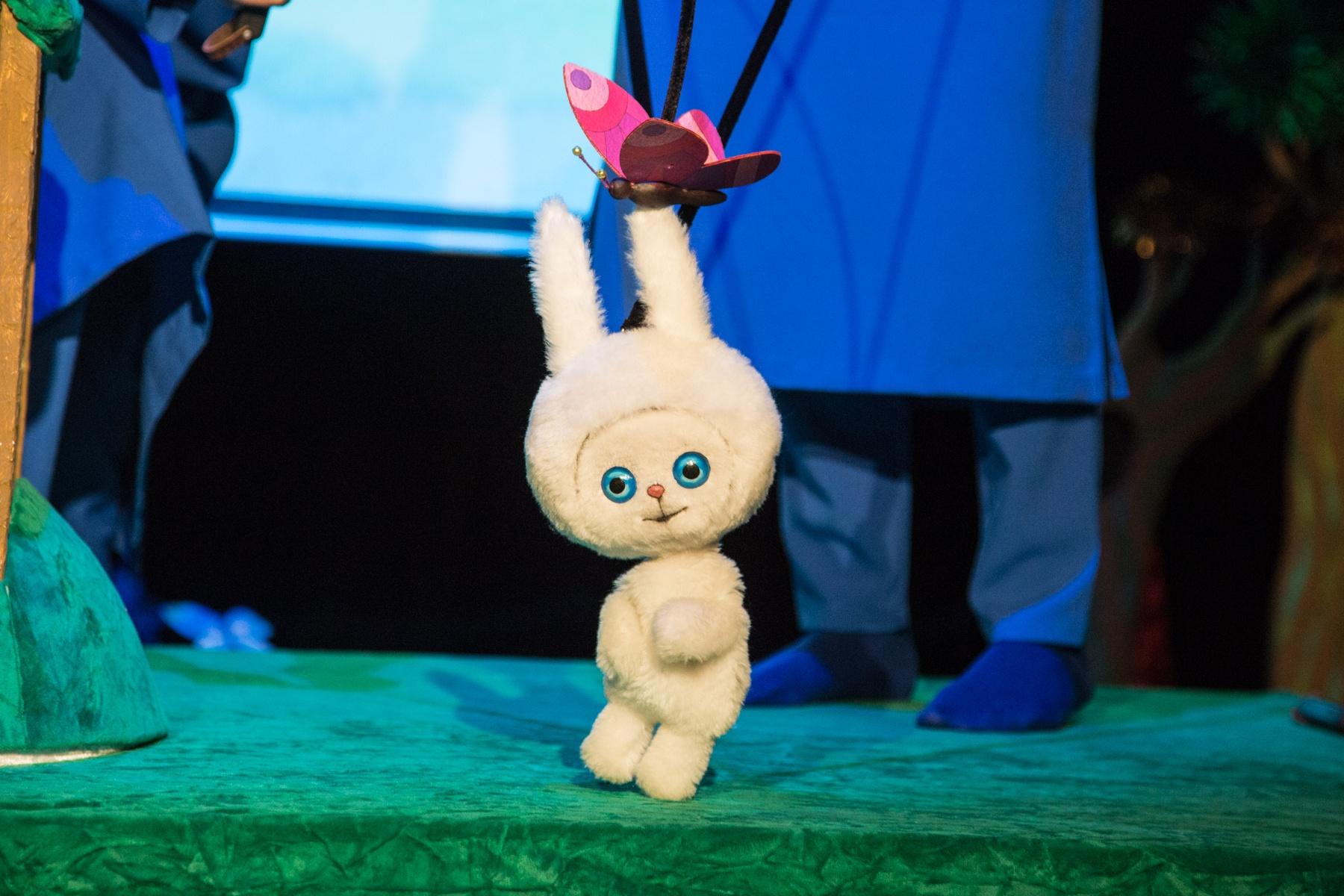Спектакль о маленьком белом Зайчике, который только начинает узнавать мир. Он ничего не боится, потому что еще не знает, что такое страх. Все, что Зайчик видит вокруг, даже самые обычные вещи, для него – необыкновенные игрушки и чудеса. Радуга, таинственный туман, гора с водопадом, луна на макушке сосны, дождь и чистый снег в душе малыша – продолжение счастья маминой любви.