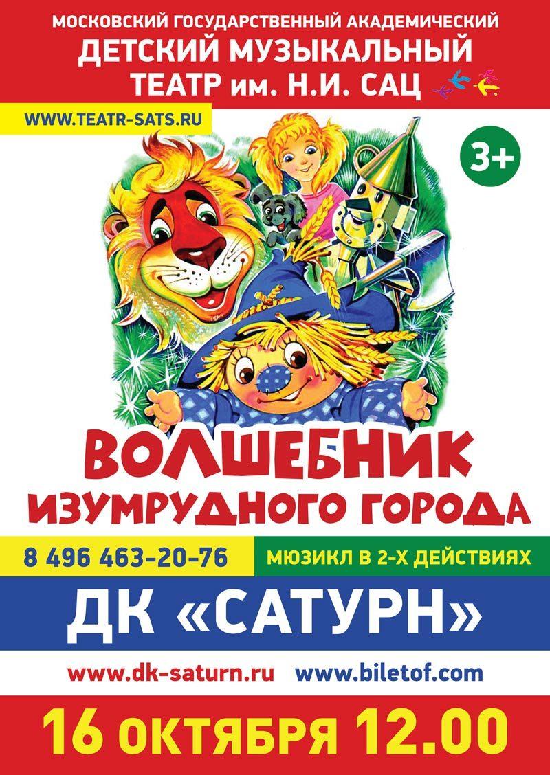 16 октября 2021 года Культурно-досуговый центр «Сатурн» представляет Спектакль «Волшебник Изумрудного города»