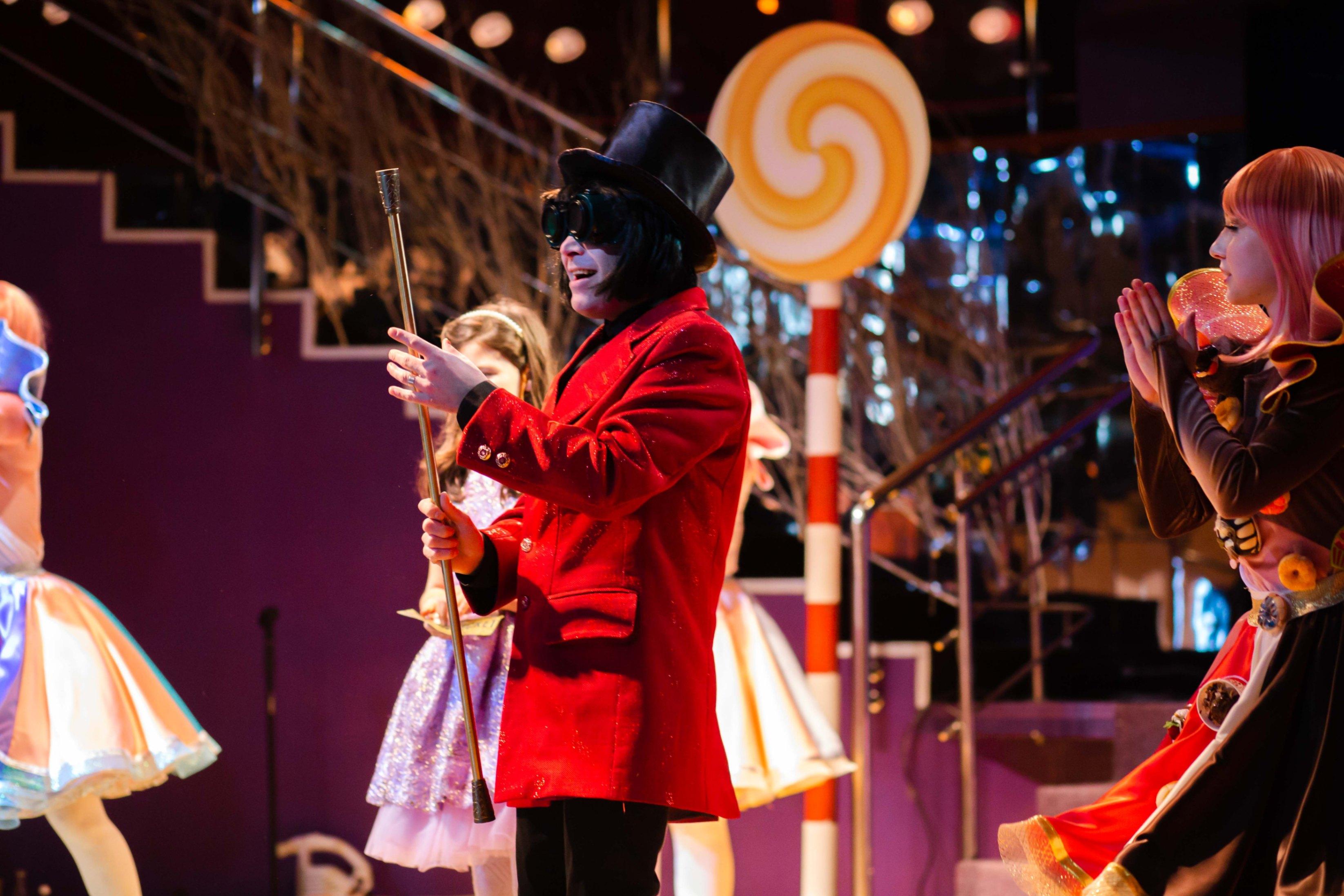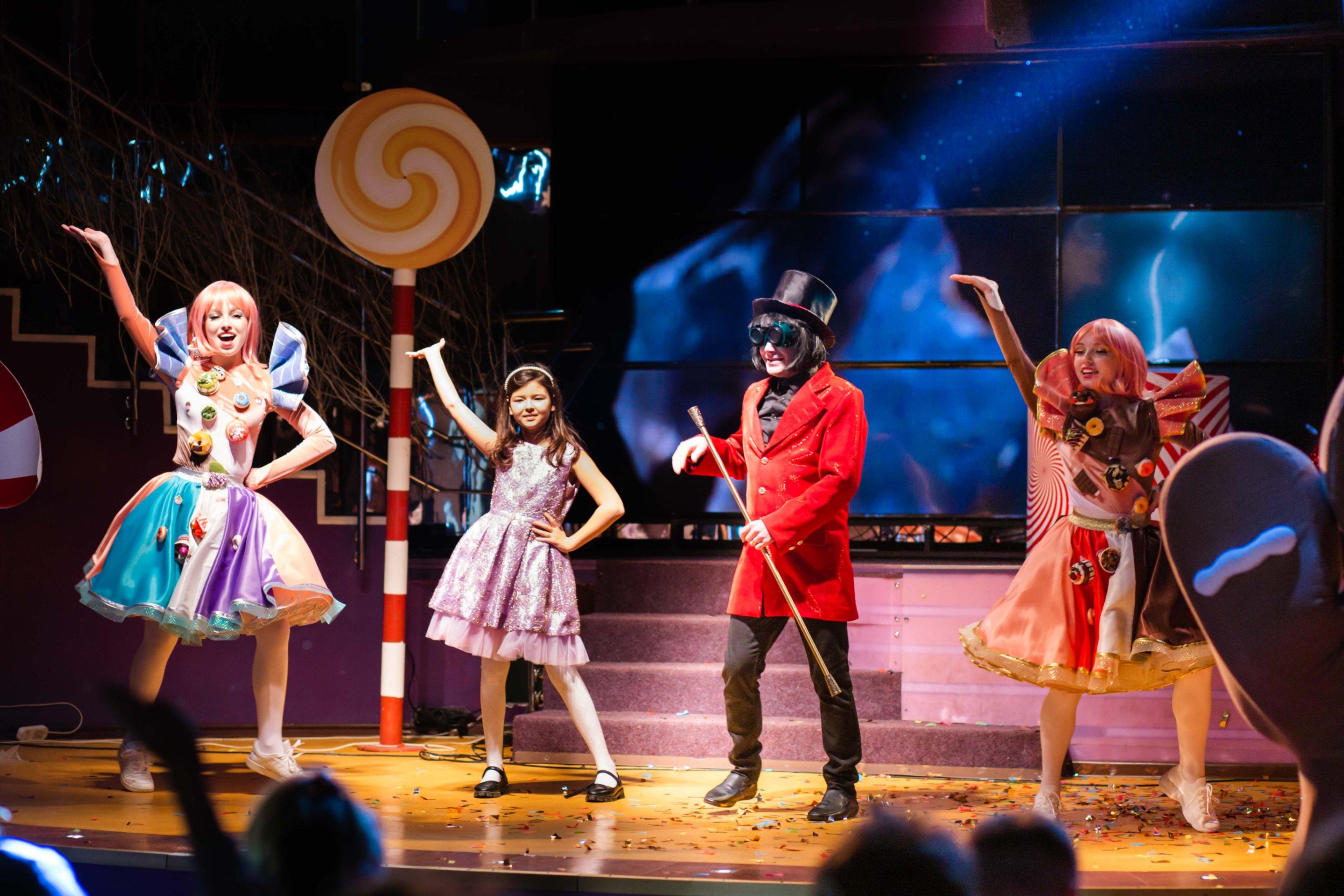 Гости спектакля оказываются на территории шоколадной фабрики Вилли Вонки, где в рамках акции, устроенной владельцем фабрики, проходит экскурсия-испытание на честность и порядочность детей-гостей спектакля (зрителей). Тот, кто пройдёт с честью все испытания и искушения на фабрике-тому Вилли Вонка передаст свою фабрику в полное владение после себя. Если конечно именно вы найдёте золотой билет...
